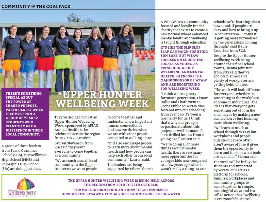 A shout out to The Coalface for helping share the message of Upper Hunter Wellbeing Week and the incredible Year 12 students leading the charge across our local schools.